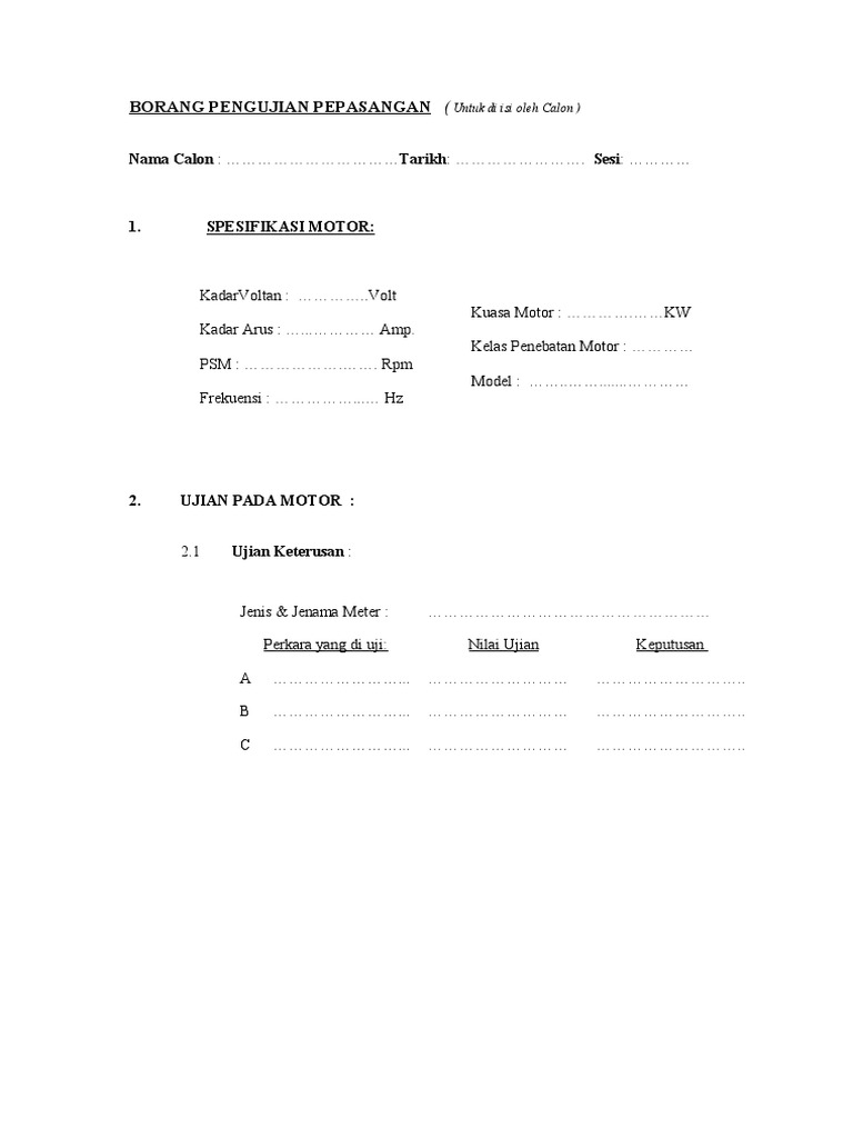 Borang Pengujian Motor Pdf